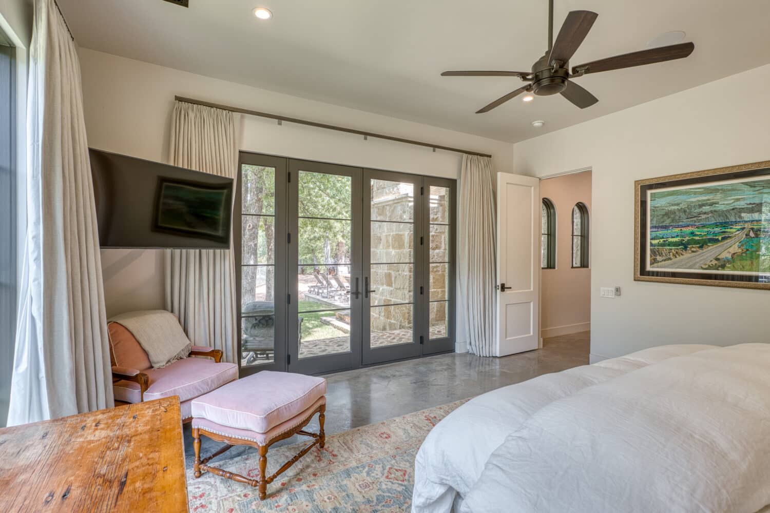 103 Alameda is a beautifully designed home tucked away in the private golf community of Escondido Golf and Lake Club. Escondido Golf and Lake Club has consistently been ranked a Top 5 Golf Club in Texas, and boasts a private Tom Fazio designed golf course. SHM Architects from Dallas, TX designed the home, and is one of the most awarded architectural firms in Texas. The home flows out to the private backyard that has a new pool completed in 2022, and large expansive patios that take in the beauty of the Texas Hill Country in a very private and luxurious setting. The home features, 5 bedrooms, 4.5 baths, two master suites, a bunk room, and an open floor plan designed for entertaining friends and family. The backyard area is a great setting for enjoying the pool and outdoor living areas that everyone is looking for when searching for properties in the Texas Hill Country. Come see this property for yourself!